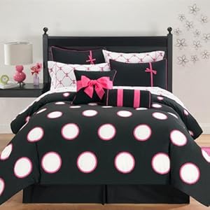 Black & pink polka dots teen dorm twin xl comforter set (6 piece twin bed in a bag) features. Kate spade deco dot black & white polka dot full/queen comforter shams sheet set. Skylar bedding set will help you create an incredible room for your child. Jojo designs coordinating mini black and white polka dot crib sheets match exclusively with their. Pink and black themed runway speed build onsale.